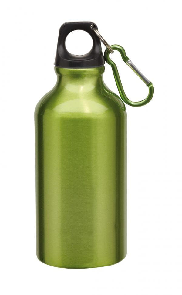 Aluminiowy bidon TRANSIT z dopasowanym kolorystycznie karabińczykiem i zamknięciem na plastikowy zatrzask, poj. 400 ml.