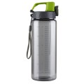 Bidon o pojemności 600 ml wykonany z tritanu z pokrywką z pp poliproylenu. Tritan jest tworzywem niezawierającym BPA, jest wytrzymały i przejrzysty. Bidon posiada miarkę, uchwyt na nadgarstek, funkcję podwójnego zabezpieczenia przed wylaniem wody - przycisk i dodatkowo haczyk. Co istotne, jest łatwy w myciu. Pakowany w woreczek foliowy.