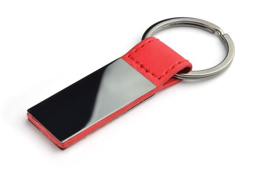 Elegancki brelok wykonany z ekoskórki PUi metalu w kolorze grafitowym.