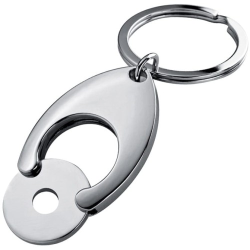 Metalowy brelok do kluczy, z żetonem do wózka.