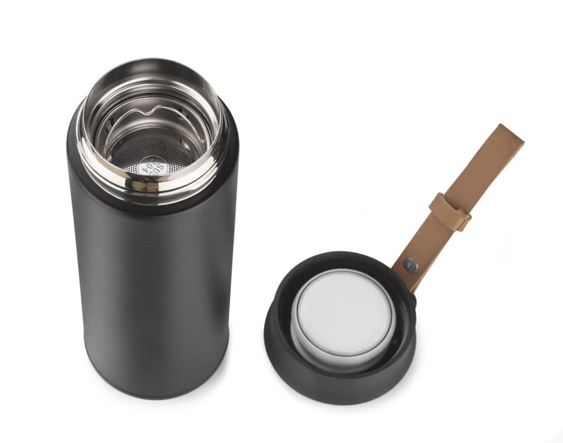 Butelka termiczna MACHO łączy w sobie elegancki wygląd i wysoką jakość wykonania. Dzięki próżni między ściankami trzyma temperaturę ok. 13 godzin. Wykonana ze stali nierdzewnej 304. Przykrywka pokryta jest powłoką soft touch, co sprawia, że jest przyjemna w dotyku, a pasek z ekoskóry dodatkowo wpływa na wygodę użytkowania. Wewnątrz znajduje się sitko, dzięki któremu możemy zaparzyć herbatę.