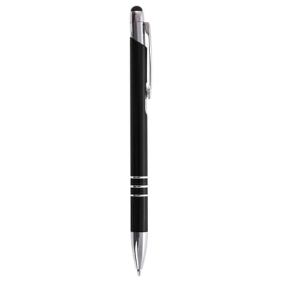 Długopis, touch pen z czarną, gumową końcówką, kolorowym trzonem i srebrnymi elementami