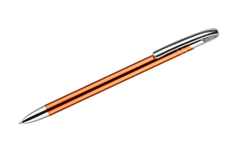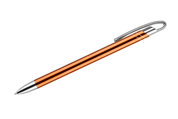 Cienki i zgrabny metalowy długopis w kolorze o metalicznym wykończeniu. Klip i końcówki w kolorze srebrnym chromowanym. AVALO wyróżnia się wśród podobnych długopisów oryginalnym projektem klipu. Korpus ozdobiony został dwoma skośnymi paskami w kolorze srebrnym. Wkład o grubości 0,7 mm w kolorze niebieskim.