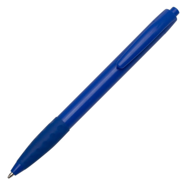 Plastikowy długopis promocyjny. Wyposażony w niebieski wkład.