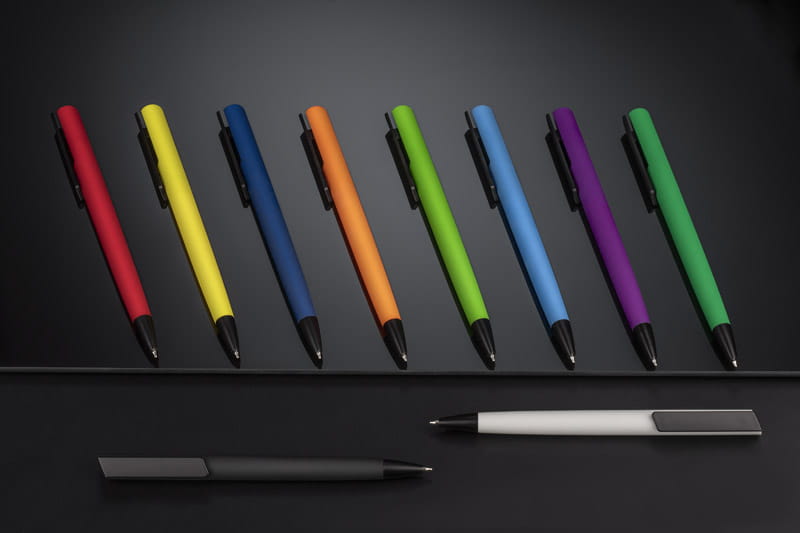 CIDO to długopis wykonany z tworzywa sztucznego z gumowaną powierzchnią. Wykończenia w czarnym kolorze. Długopis ma oryginalny mechanizm - włącza się go poprzez naciśnięcie klipu. Szeroki płaski klip zapewnia widoczną powierzchnię do znakowania. Wkład w kolorze niebieskim.
