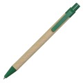 Ekologiczny długopis wykonany z kartonu z recyklingu. Skuwka, przycisk i końcówka wykonane z plastiku nadającego się do ponownego przetworzenia. Niebieski wkład.