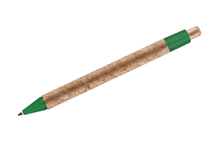 Długopis KORTE nawiązuje swoim wyglądem do idei recyclingu. Korpus został wykonany z naturalnego korka, a przycisk z drewna. Wykończenia z tworzywa sztucznego w żywych kolorach dodają mu uroku. Wkład w kolorze niebieskim.