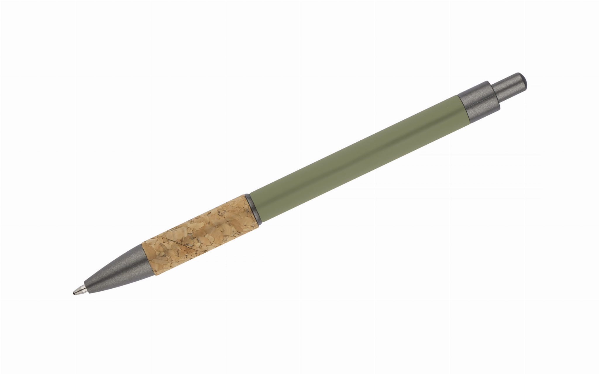 Długopis KUBOD posiada klasyczny, prosty kształt. Wykonany z aluminium pokrytego przyjemną w dotyku gumową powłoką. Uchwyt wykończony naturalnym korkiem gwarantuje wygodne trzymanie. Wykończenia w kolorze grafitowym wykonane zostały z tworzywa. Długopis automatyczny. Wkład typu X20 w kolorze niebieskim.