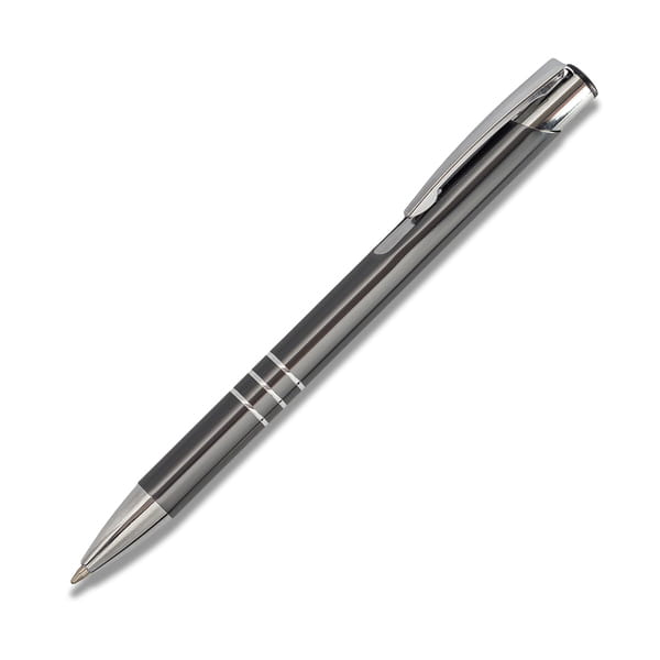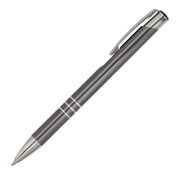 Długopis aluminiowy. Wyposażony w niebieski wkład.