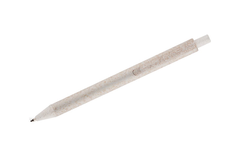 Długopis REVI został wykonany z myślą o wszystkich, którym bliska jest idea redukowania odpadów z tworzywa sztucznego. Tradycyjne tworzywo sztuczne zostało zastąpione specjalnym materiałem wykonanym w 40% z naturalnej słomy. Klasyczny, prosty kształt czyni go uniwersalnym gadżetem. Długopis automatyczny. Wkład typu X20 w kolorze niebieskim.