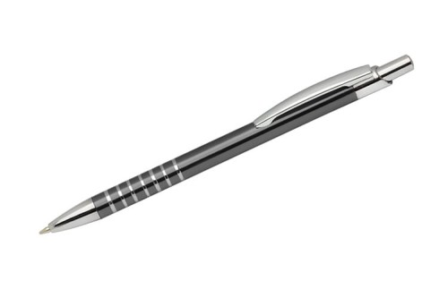 Prosty długopis wykonany z aluminium ozdobiony szerokimi ringami.