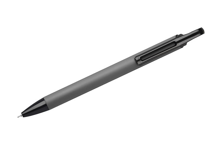 SOFI to długopis dla wszystkich miłośników miękkiego, gumowanego wykończenia oraz miękko piszącego wkładu. Korpus wykonany z aluminium pokryty jest przyjemną w dotyku, gumowaną powłoką. Wykończenia w kolorze czarnym nadają mu nowoczesny wygląd. Atutem długopisu jest półżelowy wkład o grubości 0,7 mm. Wkład w kolorze niebieskim.