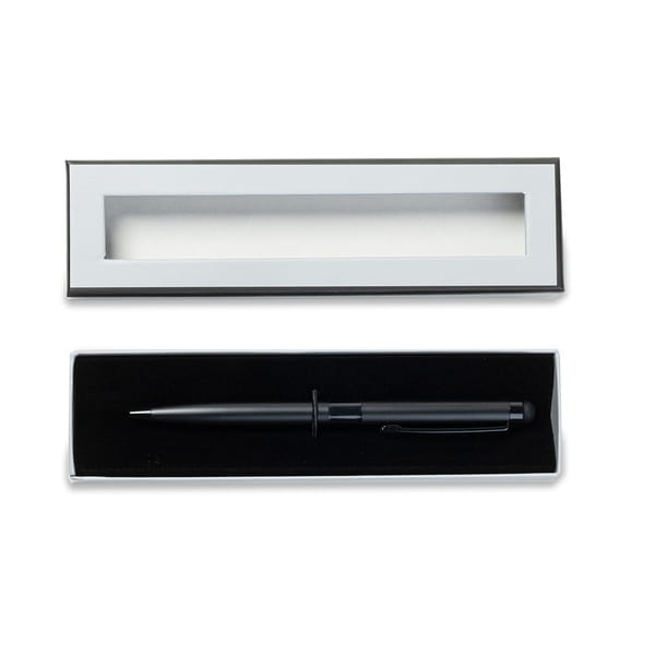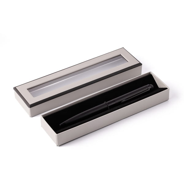 Metalowy długopis z końcówką przystosowaną do ekranów dotykowych w upominkowym pudełku. Wkład w kolorze niebieskim.