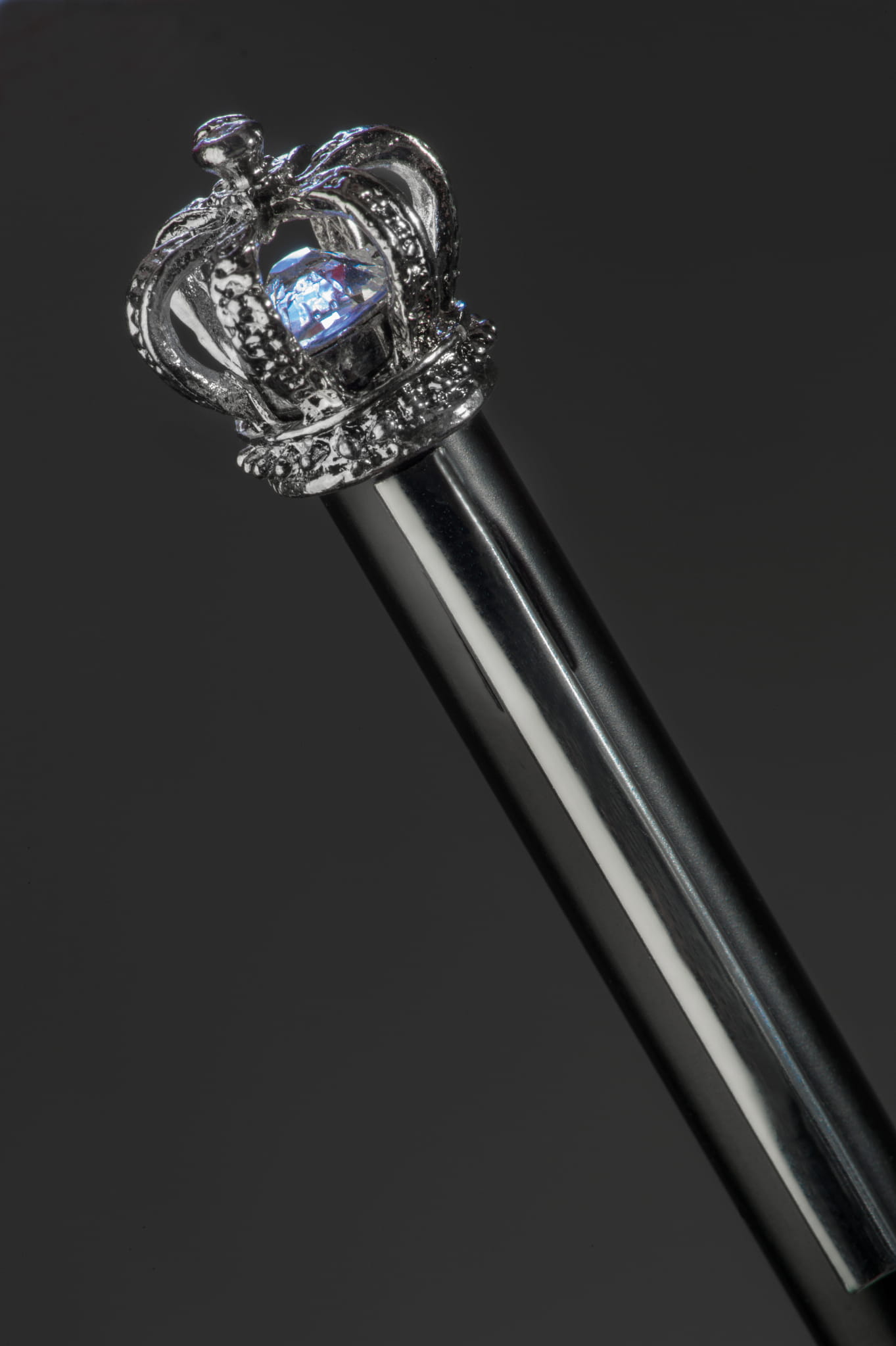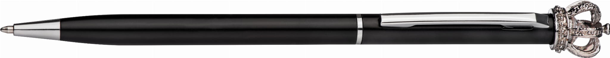 Oryginalny długopis metalowy zakończony koroną i kryształkiem Swarovskiego.