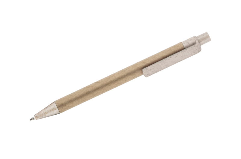 Długopis TIKO wykonany został z myślą o ponownym wykorzystaniu surowców. Jego korpus wykonany jest z papieru po recyklingu, a końcówki z tworzywa z domieszką słomy, która ogranicza ilość tworzywa sztucznego potrzebnego do produkcji. Prosty, ponadczasowy wzór. Długopis automatyczny. Wkład typu X20 w kolorze niebieskim.