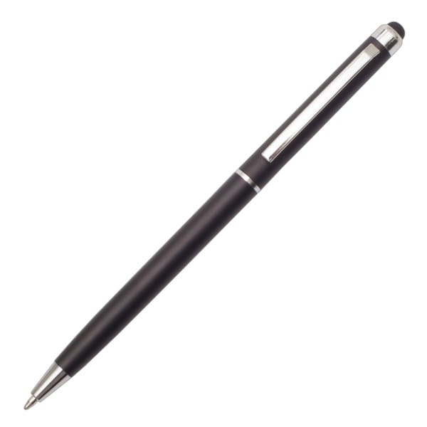 Długopis z końcówką przystosowaną do ekranów dotykowych. Korpus wykonany z plastiku, skuwka z metalu. Wkład w kolorze niebieskim.