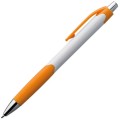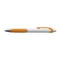 Długopis plastikowy, wyposażony w klip i gumkę ułatwiającą pisanie oraz niebieski wkład.