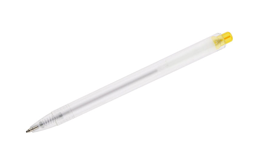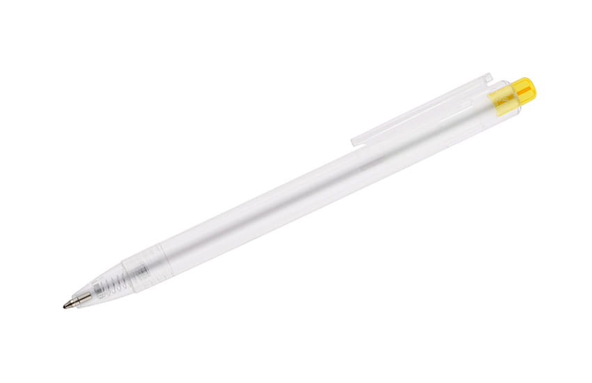 Długopis KLIIR powstał w całości z tworzywa PET po recyklingu (rPET). Ten prosty gadżet pokazuje nam, jak świadomie możemy gospodarować odpadami z tworzywa sztucznego i tworzyć z nich nowe przydatne przedmioty. Przezroczysty bezbarwny korpus długopisu ładnie połączony jest z przyciskiem w żywych kolorach. Długopis automatyczny, wkład typy G2 w kolorze niebieskim.