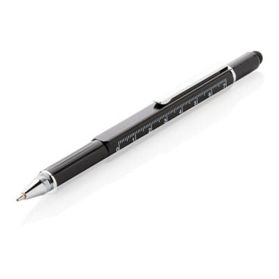 Długopis wielofunkcyjny 5 w 1, linijka 7 cm, poziomica, śrubokręt, touch pen, wykonany z wysokiej jakości mosiądzu, aluminiowy klip, długość pisania do 400 m