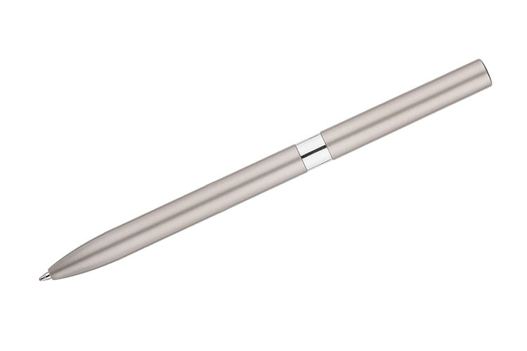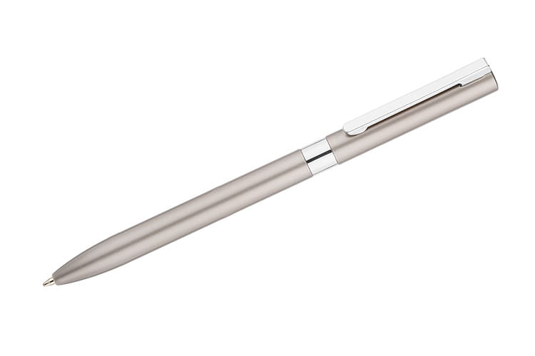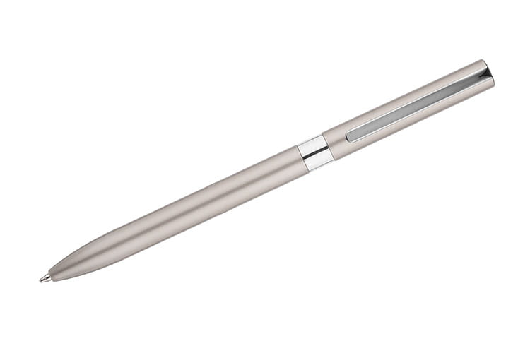 Długopis GELLE to elegancja i wygoda pisania w jednym. Długopis wykonany jest z metalu z wykończeniami chromowanymi lub złoconymi i posiada mechanizm typu twist. Żelowy wkład o grubości 0,5 mm w kolorze niebieskim.