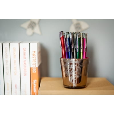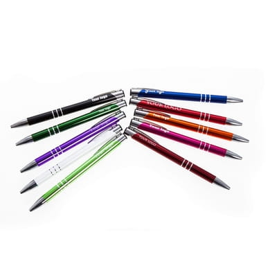 Długopis z kolorowym trzonem i srebrnymi elementami