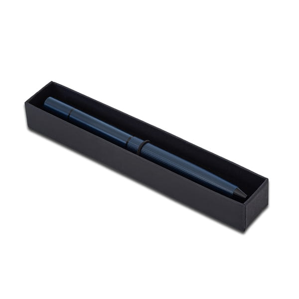 Długopis oraz wieczny ołówek w jednym. Długość pisania odpowiada 100 zwykłym ołówkom. Wkład długopisu w kolorze niebieskim. Pakowany w prezentowym pudełku.