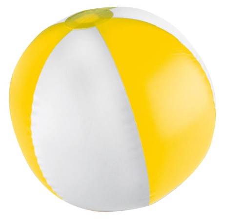Dwukolorowa piłka plażowa wykonana z wytrzymałego tworzywa, dostosowana do norm unijnych.  Średnica ok. 25 cm.