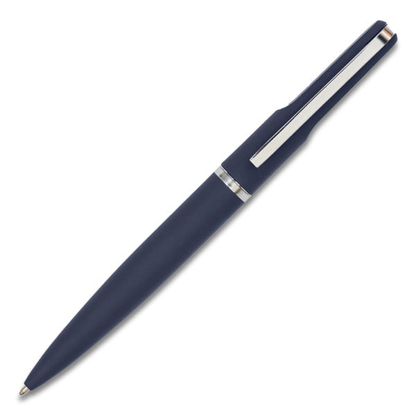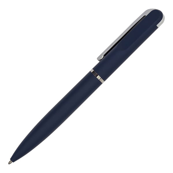 Elegancki długopis o przyjemnym w dotyku, satynowym wykończeniu. Pakowany w upominkowe pudełko. Wkład w kolorze niebieskim.