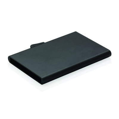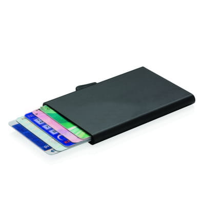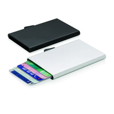 Etui na karty z ochroną RFID C-Secure | To solidne etui wykonane z aluminium ochroni Twoje dokumenty przed elektroniczną kradzieżą. Koniec ze złamanymi i pogiętymi kartami. Pomieści do 7 kart lub 5 kart z wytłoczonym napisem. Karty można łatwo wysunąć z boku.