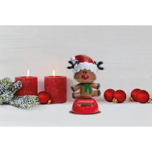 Ruszająca się figurka świąteczna, wyposażona w zasilanie słoneczne. Kiedy promienie słoneczne padają na solar w podstawie, zabawka zaczyna się poruszać. Logotyp można umieścić na podstawie zabawki.