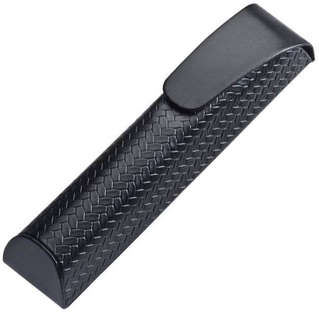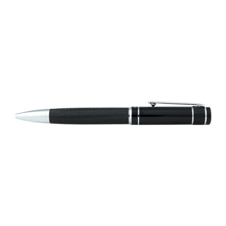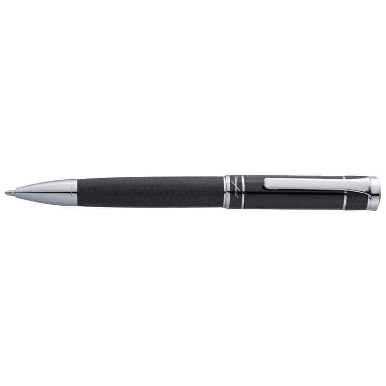 Luksusowy długopis z kolekcji Ferraghini, wyposażony w niebieski wkład. Wykończony delikatnym, przeplatanym materiałem, błyszczącym, czarnym lakierem oraz chromowanymi elementami urzeka oryginalnością. W zestawie z dopasowanym, skórzanym etui z magnetycznym zamknięciem, którego wnętrze wyściełane zostało delikatnym zamszem.