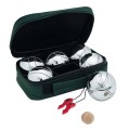 Zawsze modna gra w bule zawiera komplet sześciu metalowych kul, małą drewnianą kulkę oraz taśmę do mierzenia odległości. Gra zespołowa do 3 osób, pakowana w nylonowe etui.