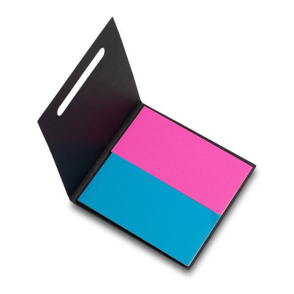 Elektrostatyczne karteczki, które przylegają do każdej suchej powierzchni. Można pisać po nich długopisem, flamastrem, a nawet miękkim ołówkiem, a na odwrocie używać pisaków suchościeralnych. Nie pozostawiają śladów.