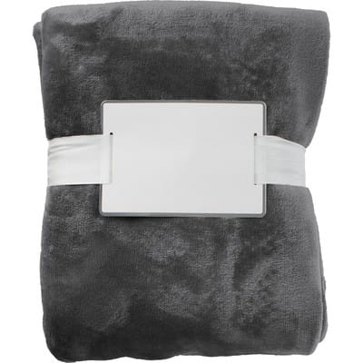 Koc polarowy grafitowy, przepasany wstążką