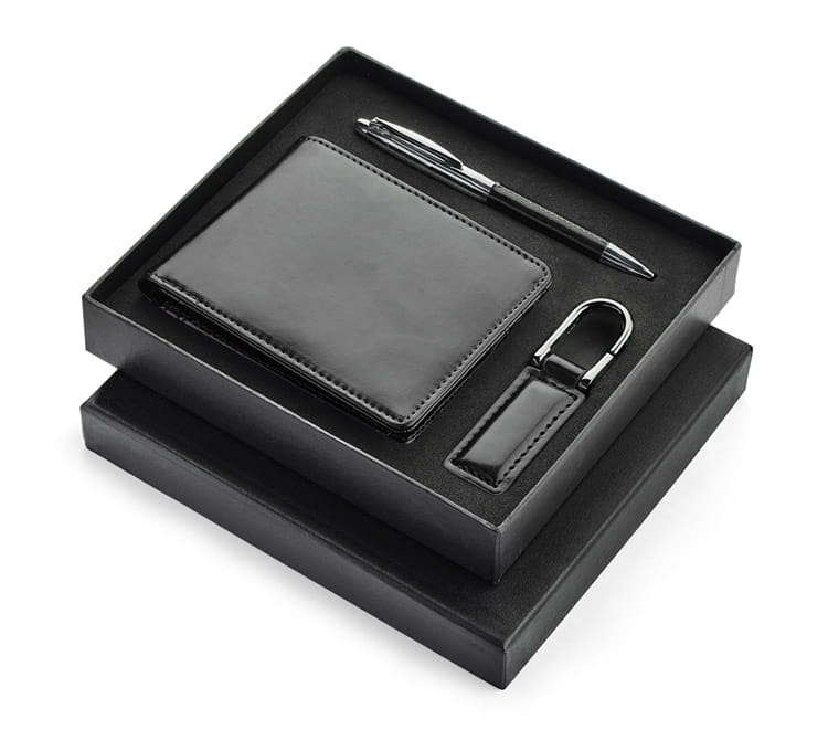 Komplet upominkowy portfel, brelok, długopis czarny