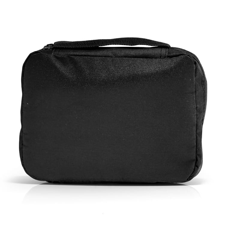 Kosmetyczka MURA jest produktem przydatnym, a wręcz niezbędnym podczas podróży. Dzięki trzem przegródkom i trzem zamykanym na zamek kieszeniom kosmetyczka jest pojemna i umożliwia odpowiednie uporządkowanie wszystkich niezbędnych przedmiotów. Kosmetyczka wyposażona w wieszak, który pozwala na powieszenie jej w toalecie. Kosmetyczka wykonana jest z poliestru 300D.
