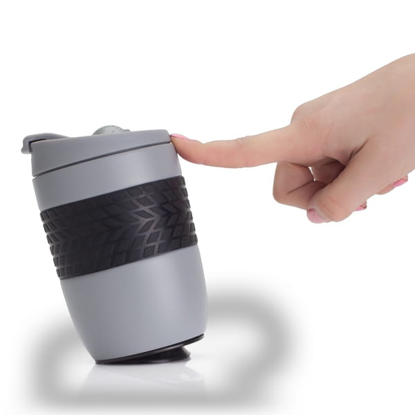 Szczelny kubek izotermiczny o pojemności 200 ml z ergonomiczną opaską ułatwiającą trzymanie kubka. Umieszczona na spodzie przyssawka zapobiega przypadkowemu przewróceniu się kubka. Dwie ścianki ze stali nierdzewnej, wewnątrz stal 18/8 o podwyższonej jakości.
