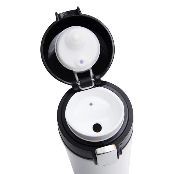 Kubek termiczny o pojemności 400 ml łączący najlepsze zalety termosu i kubka. Wygodny w użyciu, wyposażony w technologię unbolt&press – podwójne zabezpieczenie przed przypadkowym wylaniem napoju. Dwie ścianki ze stali nierdzewnej, wewnątrz stal nierdzewna 18/8 o podwyższonej jakości. Próżnia pomiędzy ściankami zapewnia bardzo dobre właściwości termoizolacyjne. Utrzymuje temperaturę powyżej 40°C przez 16 godzin. Podstawa kubka stalowa.