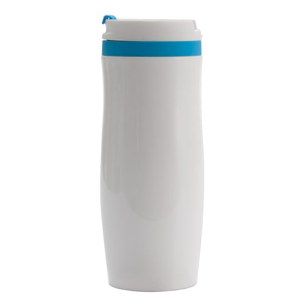 Kubek izotermiczny – o pojemności 390 ml z dwiema ściankami ze stali nierdzewnej, zewnętrzna pokryta lakierem. Wewnętrzna ścianka wykonana ze stali o podwyższonej jakości 18/8. Podstawa kubka z wodoodpornej gumy termoplastycznej TPR. Zamknięcie typu flip up sip. Utrzymuje ciepło do 7 godzin.