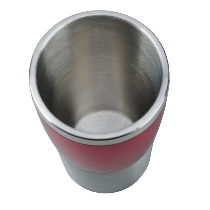 Kubek izotermiczny z metalową pokrywką i 2 ściankami ze stali nierdzewnej. Wewnątrz kubka stal 18/8 o podwyższonej jakości, na zewnątrz stal nierdzewnej 18/0 i transparentny plastik. Pojemność: 380 ml. Pakowany w biały kartonik.