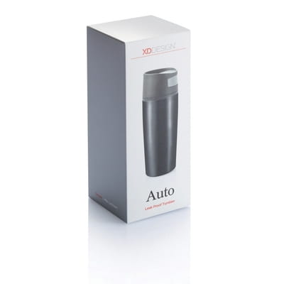 Kubek podróżny 300 ml ze stali nierdzewnej, wnętrze z PP, szczelna pokrywka z przyciskiem, nie wymaga obsługi oburącz, klasa termiczna: 1