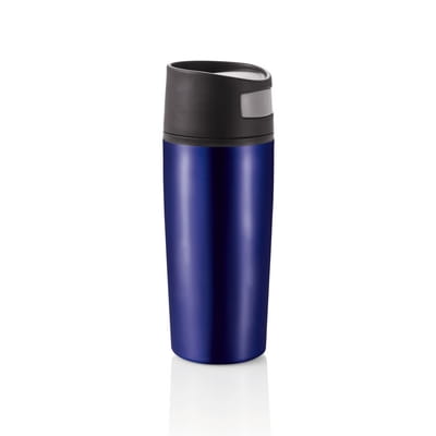 Kubek podróżny 300 ml ze stali nierdzewnej, wnętrze z PP, szczelna pokrywka z przyciskiem, nie wymaga obsługi oburącz, klasa termiczna: 1