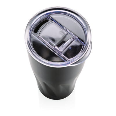 Kubek 500 ml wykonany ze stali nierdzewnej 304, posiada podwójne ścianki z miedzianą izolacją, dzięki czemu utrzymuje ciepłą temperaturę do 8 h i zimną do 24 h. Konstrukcja zapobiega kondensacji na zewnątrz kubka. Łatwy w użyciu, pokrywka z przyciskiem i zasuwanym zamknięciem. Odporny na rozlewanie. Wyłącznie mycie ręczne. W komplecie z pudełkiem podarunkowym. |Klasa termiczna: 3