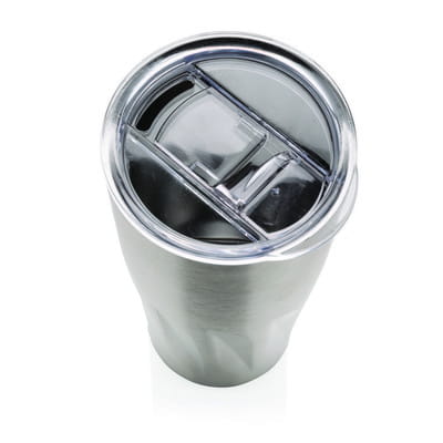 Kubek 500 ml wykonany ze stali nierdzewnej 304, posiada podwójne ścianki z miedzianą izolacją, dzięki czemu utrzymuje ciepłą temperaturę do 8 h i zimną do 24 h. Konstrukcja zapobiega kondensacji na zewnątrz kubka. Łatwy w użyciu, pokrywka z przyciskiem i zasuwanym zamknięciem. Odporny na rozlewanie. Wyłącznie mycie ręczne. W komplecie z pudełkiem podarunkowym. |Klasa termiczna: 3