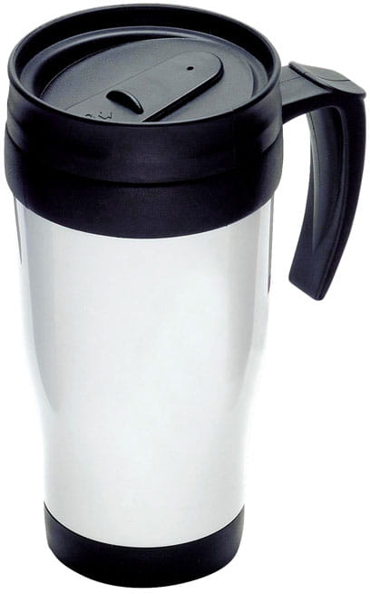 Plastikowy kubek termiczny o pojemności 400 ml, dopasowany do większości uchwytów na napoje w samochodzie.