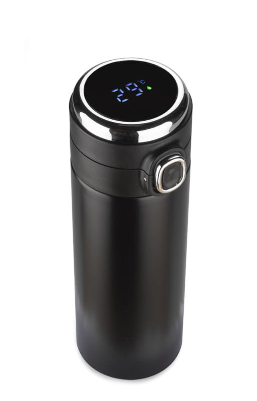 Kubek termiczny FOKS idealnie sprawdzi się w długich podróżach i w codziennym użytkowaniu. Posiada izolację próżniową, dzięki czemu utrzymuje temperaturę napoju do 13 godzin. Posiada również niezwykle wygodną funkcję, jaką jest dotykowy termometr cyfrowy wbudowany w nakrętkę. Wystarczy obrócić kubek do góry dnem na około 10 sekund i dotknąć nakrętki aby odczytać temperaturę napoju. Wnętrze kubka jest wykonane ze stali nierdzewnej o podwyższonym standardzie. Blokada zamknięcia zapobiegnie przypadkowemu otwarciu przykrywki.