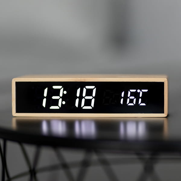 Ładowarka indukcyjna z zegarem, wyświetla także datę i temperaturę. Zasilana przez kabelek USB (w zestawie). Funkcje urządzenia: naprzemienne wyświetlanie godziny, daty, temperatury. Możliwość regulacji poziomu jasności wyświetlacza, 3 alarmy. Ładowarka działa z telefonami posiadającymi funkcję ładowania indukcyjnego. Moc: 10W.