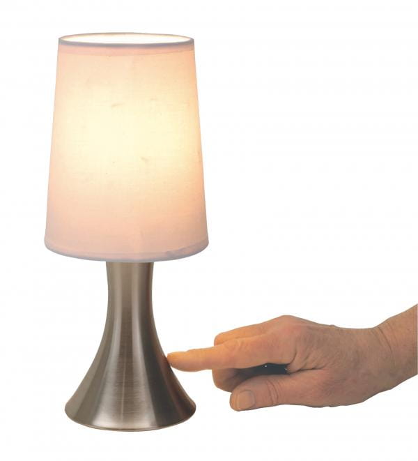 Lampa TOUCH ME z panelem dotykowym i 3-stopniową regulacją jasności światła, biały klosz, zasilanie 230 V.