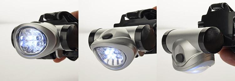 Praktyczna latarka czołowa wyposażona w 8 diod LED. Mocowanie na wytrzymałym i elastycznym pasku z regulacją długości. Posiada kilkustopniową regulację kąta nachylenia oraz 3 tryby świecenia: 2, 4 lub 8 diod. Latarka zasilana jest trzema bateriami AAA. Gadżet może być przydatny zarówno podczas turystycznych wędrówek jak i przy domowych pracach.