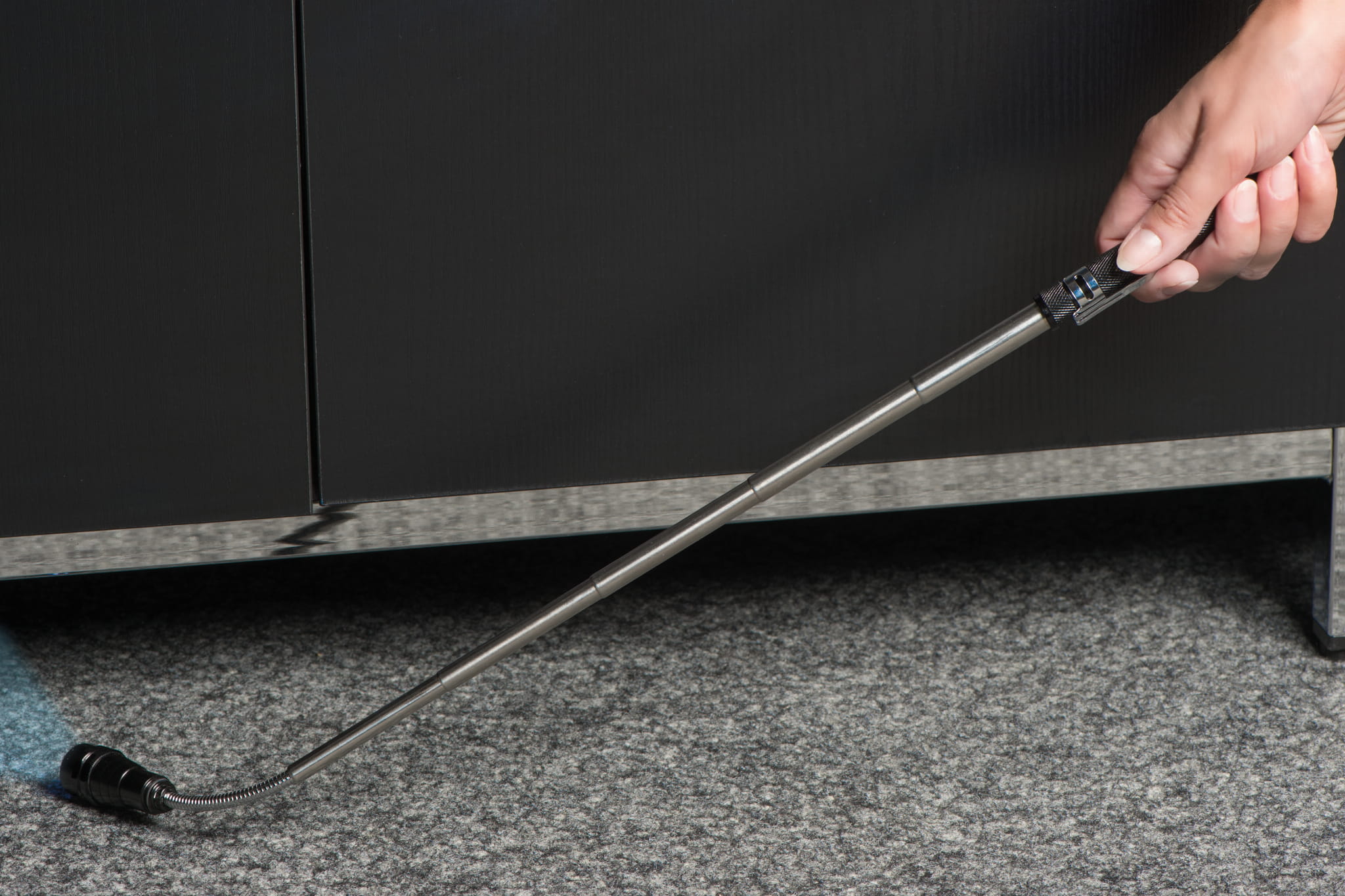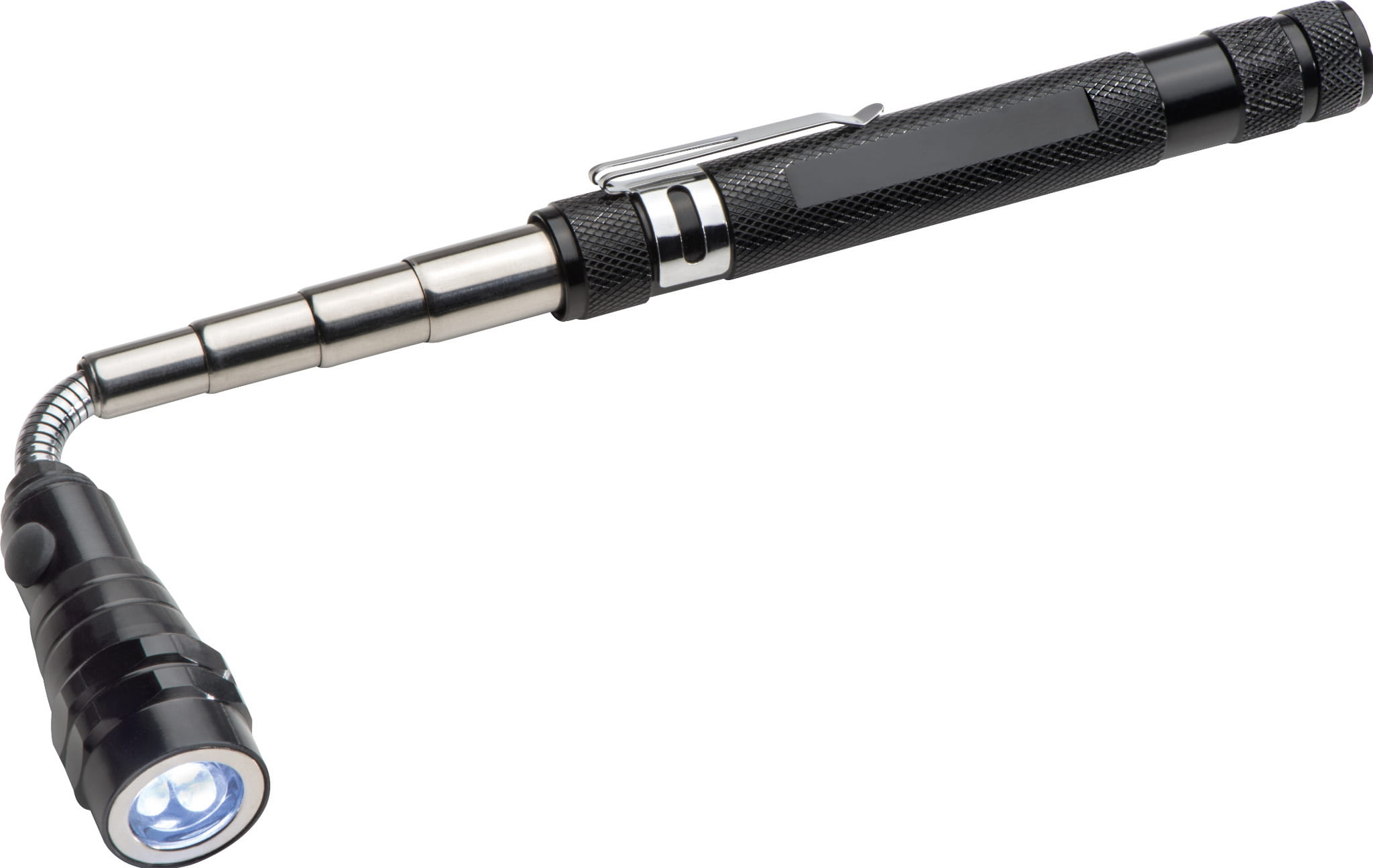 Latarka z 3 diodami LED i teleskopową rączką (dł. 60cm). Latarka posiada magnes, dzięki któremu można przyciągnąć drobne metalowe przedmioty z trudno dostępnych miejsc.